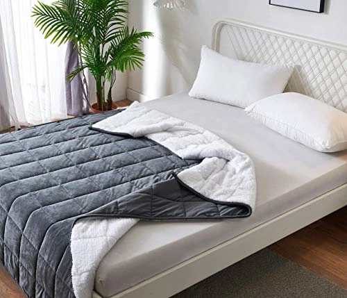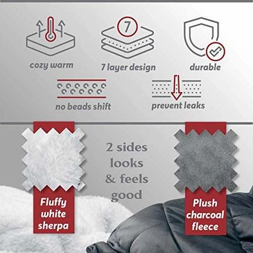 - 🧵 PREMIUM 7 LAYER QUILTED DESIGN – Durable and cozy for relaxing in all seasons; Dual sided fluffy sherpa and velvet soft minky microfleece; 2 extra layers of plush filling for softest & noise free heavy weight blanket