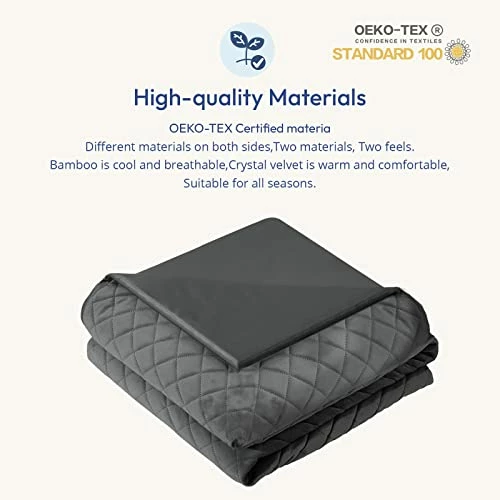 - [INNOVATIVE DESIGN]: This 2 in 1 Heavy blanket is designed with double sides for reversible use. Bamboo fiber is cool and breathable,Crystal velvet adopts ultrasonic embossing technology to remove stitches and make it softer and fit.Equipped with four-sided zipper.In addition, we also offer 15, 20, 25 and 30lb original weighted blankets and different colors for you to choose from.