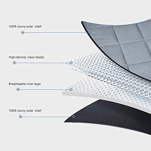 - 5*5in Smaller Pockets and 0.7mm Glass Beads–The complaint for weighted blanket users? Shifting weight and crunching sounds. Yep, we fixed that. Other blankets’ filler eventually leaks into neighboring pockets, and as a result, all the weight ends up centered in one spot and the whole point of the blanket is lost. We’ve implemented double stitching and 0.7mm glass beads which prevent filler spillage and reduced pocket dimensions from standard 6×6 to 5×5 for an even better weight distribution.