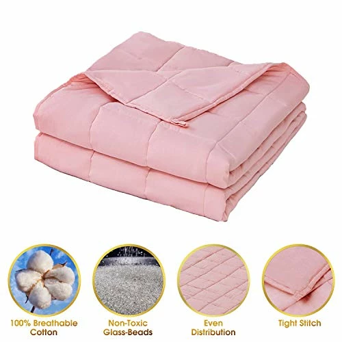 Alomidds Weighted Blanket Heavy Blanket Premium Cotton Material With Glass Beads (48″x72″ 15LBS, Pink)