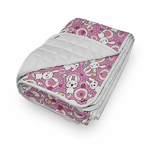 Ambesonne Anime Weighted Blanket, Funny Kawaii Illustration Rabbits Funky Animals Bunnies Humor Print, Heavyweight-Comforter With Glass Beads For Deep Sleep, 60″ X 80″, White Pink