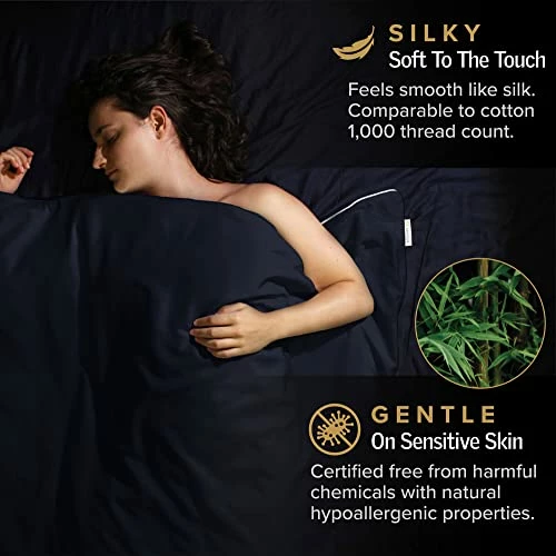 Aricove Weighted Blanket Cover, 48″x72″, Cooling Bamboo Duvet Cover For Weighted Blanket In Twin Size, Navy Blue