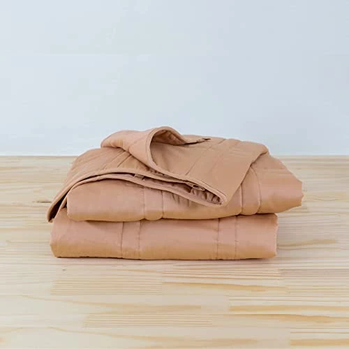 Baloo Weighted Blanket Throw Size – 12lb Double Quilted Personal Size Heavy Blanket – Eco-Luxury Soft Cool Cotton With Natural Plant-Based Dye, Clay (42×72 Inches)