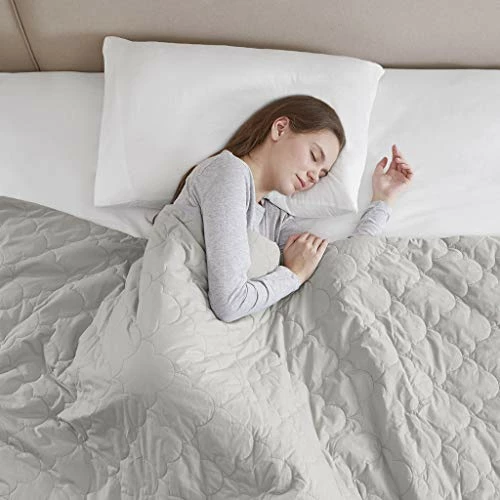 “Beautyrest Deluxe Weighted Adult, Ogee Quilted 100% Cotton, Glass Beads Filling, And Removable Cover Calming Heavy Blankets, 60″” X 70″”-12Lbs, Grey” (BR51N-0930)