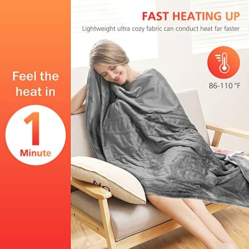 - Fast Heating: Comfier electric blanket throw can provide even heat distribution and fast heats up to keep you warm on cold days. This electric throw blanket has ETL safety certification and overheating protection,so it is safe to use. Size: 50x60inches.