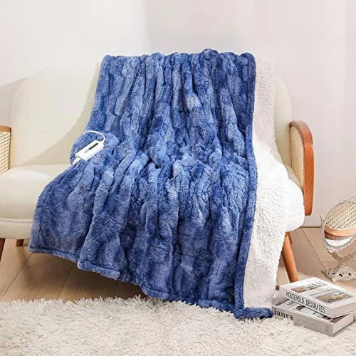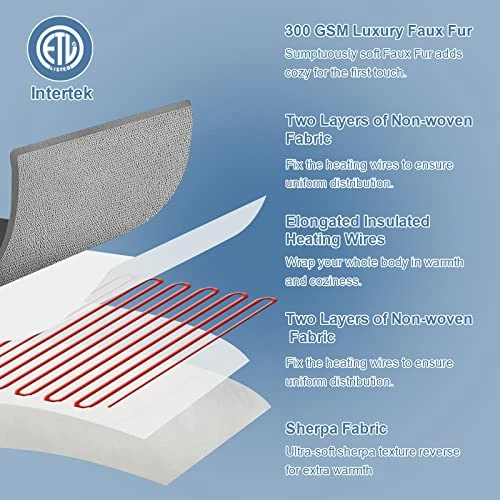 - Luxury Faux Fur & Sherpa: Blanket itself consists of five layers, an extra-soft top faux fur layer, two layers of non-woven fabric fixation provide a better experience, an insulating layer for optimum heat retention, and a Sherpa bottom layer. The soft flexible wires and ultra-soft microlight plush fabric ensures your comfort, this thick fabrication easily prevents users from noticing the electrical components
