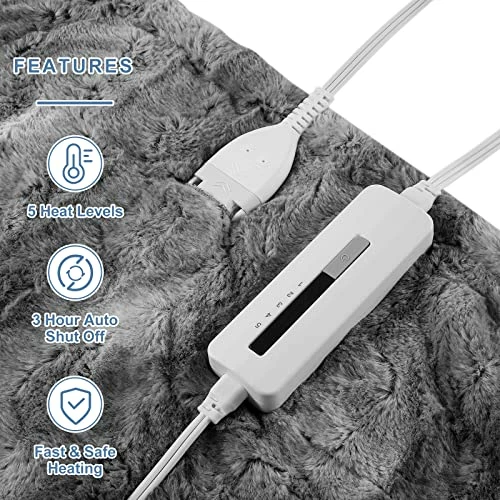 - Auto Safety Shut-Off: The electric throw features a 3-hour auto shut off, and the overheat protection function and ETL certification greatly promote the security of user experience. Heating blanket has 5 different temperature settings so you can customize the precise temperature you want. It’s also machine washable for easy care. Attention please: do not plug into the wall outlet until you have connected the controller cord to the blanket