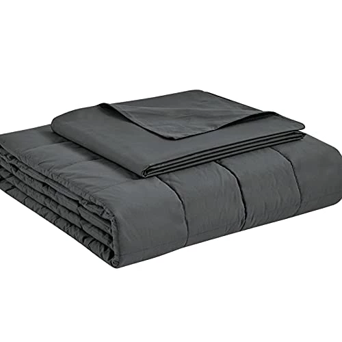 CozyLux Queen Weighted Blanket Dark Grey 15 Lbs With Removable Cotton Duvet Cover(60″x80″) Oeko-TEX Certified With Premium Glass Beads, Heavy Blanket And Washable Cover