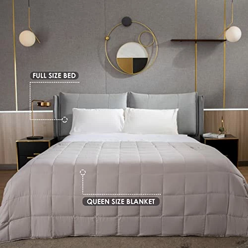 Cymula Weighted Blanket For Adults 15lbs 60″x 80″ Queen Size Light Grey Weighted Blankets For 140-180 Lb