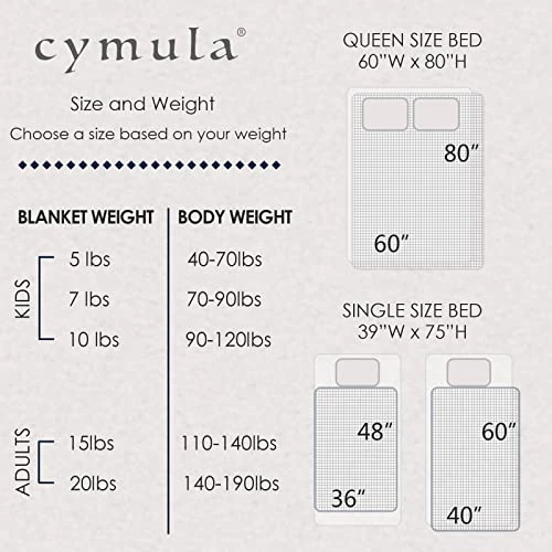 - BETTER SLEEP: The Cymula Weighted Blanket simulates gentle hugs around you, providing an all-natural sleeping ambience for adults. The weighted blanket is heavy thanks to the premium glass beads inside, which will reduce your tossing and turning by at least 95%, allowing you to fall asleep faster. If you get too hot, you can remove the removable cover and use the weighted blanket alone, which will keep you cool.