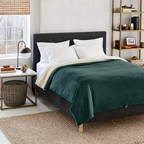 Eddie Bauer | Signature Reversible Fleece/Sherpa Electric Heated Blanket With Safe & Warm Low-Voltage Technology, Twin, Redwood