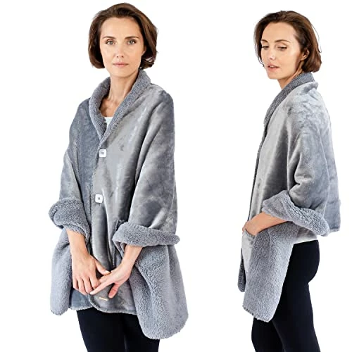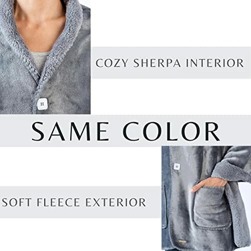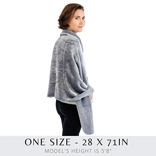 - FOR ALL SEASONS: Stylish, lightweight and soft, our fleece sherpa poncho wraps perfectly around your shoulders, making it your favorite fall shawl; You can use it on a windy autumn day and on a sunny winter day; When a sweater is too bulky and a scarf too flimsy, PONCHO BLANKET is “just right”; Soft, sherpa fleece surrounds your neck, back and shoulders in that perfect amount of warmth and comfort;