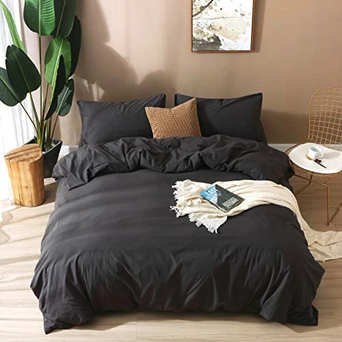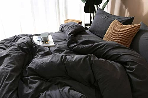 F.Y.Dreams 100% Washed Cotton Duvet Cover For Weighted Blanket 60×80 Inches With 8 Ties, Zipper On Long Side/Black Grey/Just Duvet Cover 100% Washed Cotton Khaki