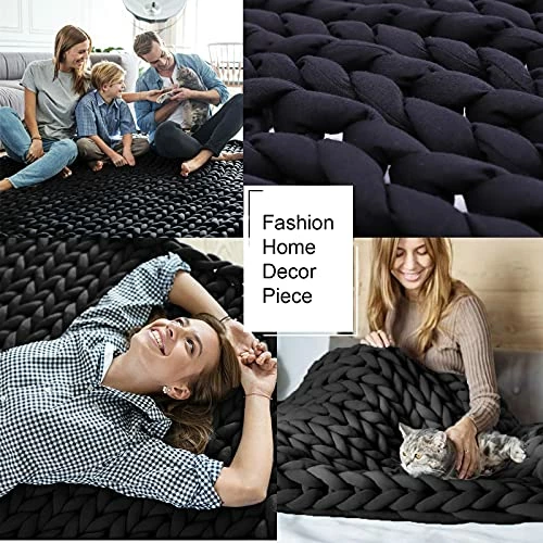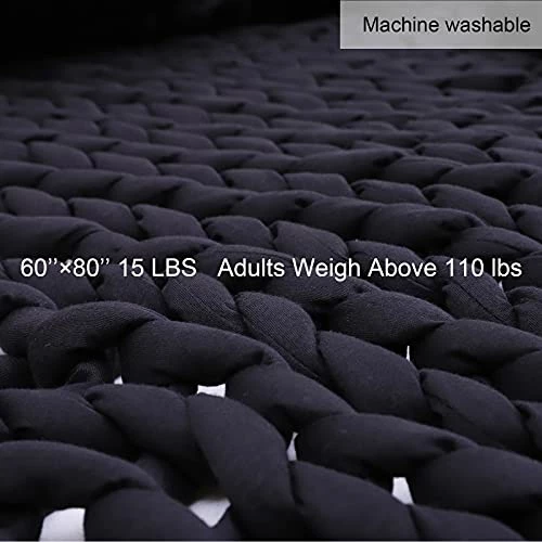 FindPanda Handmade Chunky Knit Weighted Blanket Throw, Cooling Weighted Blanket Queen Size 15 Pounds, Breathable And Comfortable Knit Weighted Blankets For Home Décor(Black, 60″×80″ 15 Lbs)
