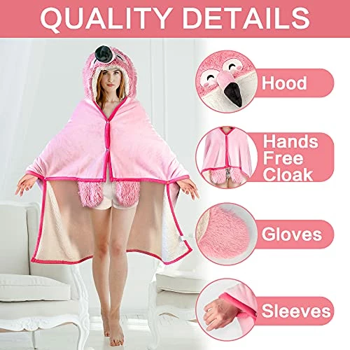 Happy Fuel Flamingo Wearable Hooded Blanket For Adults – Pink Fuzzy Super Soft Warm Cozy Plush Flannel Fleece & Sherpa Hoodie Throw Cloak Wrap – Flamingo Gifts For Women Adults Girls And Kids
