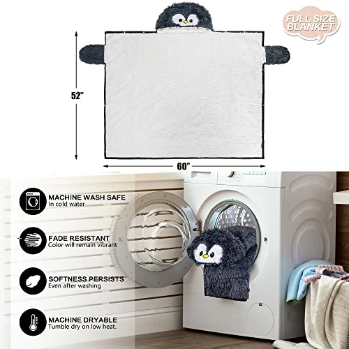 - 🐧 ONE SIZE FITS ALL – This large comfortable sized animal blanket decor is a perfect fit for most all shapes & sizes. Size: 60”x52” It keeps you warm from head to toe wherever you go.