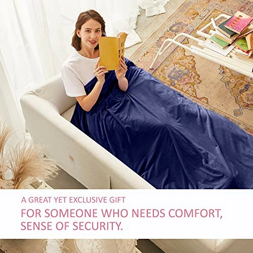 Hiseeme Weighted Blanket Queen Size(18lbs, 60″x80″, Navy Blue, For Adults Soft And Luxury Minky Shell With Premium Glass Beads