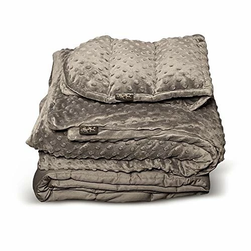 - QUALITY MATERIALS: You can see the quality in our product! With the JoysMart weighted blanket, Washable Duvet Cover Minky Dot, and Shoulder Wrap/Lap Pad, enjoy a restful night of sleep or unwind after a long week! Our durable Weighted Blanket comes already secured in our Super Soft Removeable Minky Dot Cover to keep you warm during your sleep. Our portable microwaveable/freezeable weighted shoulder wrap/lap pad helps you to relax when you warm it up or freeze it, or be snuggled on the go.