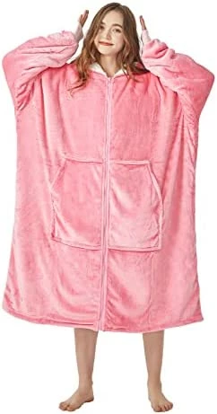 JOYWOO Wearable Blanket, Oversized Sherpa Sweatshirt Blanket For Women And Men With Zipper And Big Pockets, One Size Fits All Pink
