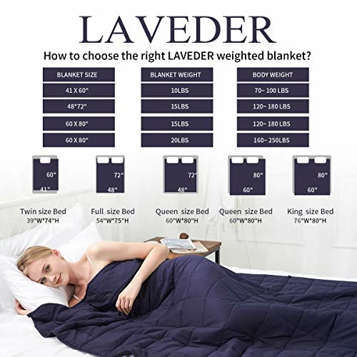 - 【FANTASTIC GIFT IDEA】LAVEDER weighted blanket 15lbs for adult is a excellent gift choice for your lovers and friends on Birthday, Christmas, New year, holiday. The navy weighted blanket decorates your bedroom more elegant. 15lb weighted blanket not only can be used at sleep, but also can be used while reading, relaxing, watching TV on couch.