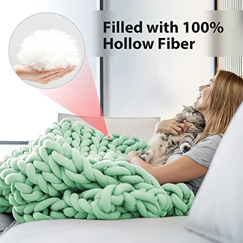 - 🛌【MORE BREATHABLE MATERIAL 】Polyester material, filled with 100% hollow fiber chunky yarn, so it is sturdy and long lasting for years.Other weighted blankets with fillers are hot and stuffy, especially in spring and summer. However, our weighted breathable throw is designed to be ventilated, available all year round.