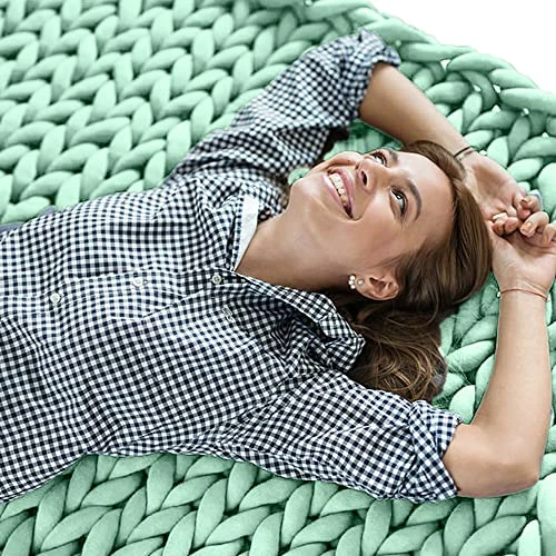 LIFEBEAUTY Knitted Weighted Blanket(47″x70″ 15lbs) , Handmade Non-Shedding Thick Polyester Throw Blanket For Sleep Stress Or Home Décor, Rest And Relax Filler Free Cozy For Bed Sofa,Light Green