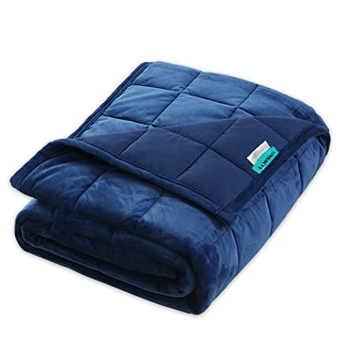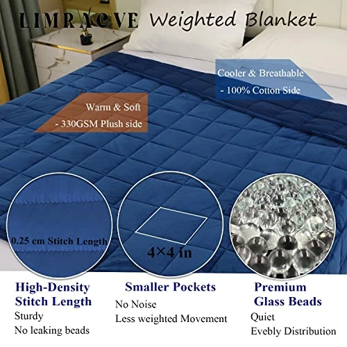 LIMRACVE Weighted Blanket 15 Pounds For Adult, Reversible Weighted Throw Blanket Queen/King Size(60″x80″‘, Heavy Blanket With Premium Glass Beads, Blanket For Sofa Bed, All Season Use, Navy