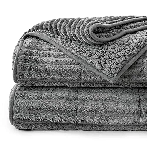 Lofus Sherpa Fleece Weighted Blanket, 15 Lbs Ribbed Microfiber Heavy Blanket, Mink Stripe Throw Blanket, Reversible Fluffy Sherpa Super Soft Warm, 60 X 80 Inches, Grey