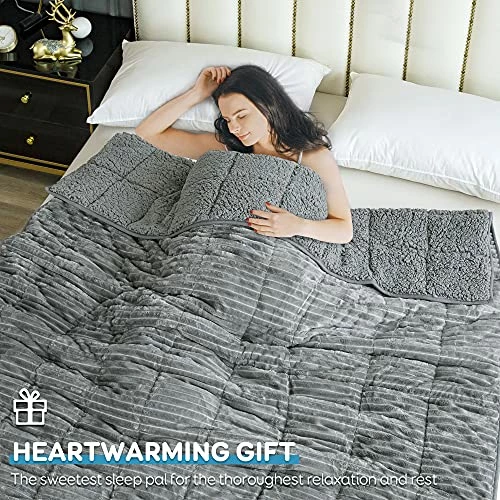 - Fancy Gift: Lofus ribbed weighted blanket is a perfect combination of plush luxury and undertone sophistication. Fuzzy Sherpa won’t fade or get dirty easy like cotton blankets. Spot clean or wash in commercial washing machine. It makes an ideal Christmas, Thanksgiving, Mother’s Day, Father’s Day, Valentines, or Birthday present.
