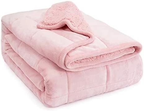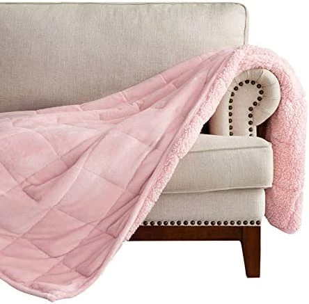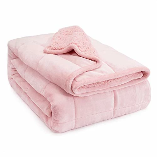 Lofus Sherpa Fleece Weighted Blanket Adults 15lbs For Full Size Bed, Ultra Fuzzy Fleece Comfort Sherpa Flannel Reversible Heavy Blanket – Pink – 48″x72″