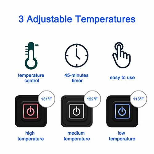 - [3 HEATING LEVEL] – With fast heating technology, the heated blanket warms you up quickly & quietly; adjustable 3 temperature settings: red LED for High, white for Medium, blue for Low; 45 minutes auto-off feature prevents overheating.