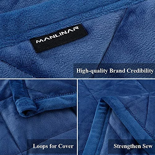 Manlinar Large(80″x87″) Fleece King Weighted Blanket 20 Lbs, Warm Soft/Plush/Minky/Fuzzy/Fluffy/Weighted Blanket,King Size Weighted Blanket Adult For Queen/King Bed,Thick Weighted Throw Blanket,Grey Navy Blue