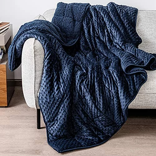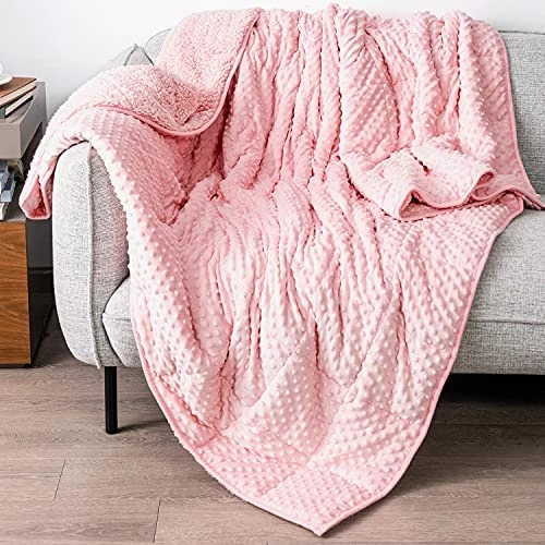 - Warm Relaxation: These weighted blankets featuring ultra cuddly Minky dot and fuzzy Sherpa reverse keep you cozy and warm in frigid weather. Minky dot bubbles trigger nervous system to relieve stress, wrap you up in toasty warmth as you curl up on the couch. This blanket would work as a great gift for your loved ones