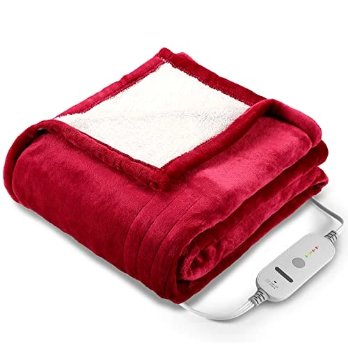 N A Electric Blanket Heated Throw With 4 Heating Levels & 3 Hours Auto Off, Double-Sided Soft Flannel Blanket 50” X 60” With Fast Heating & Machine Washable, Home Office Use, Red