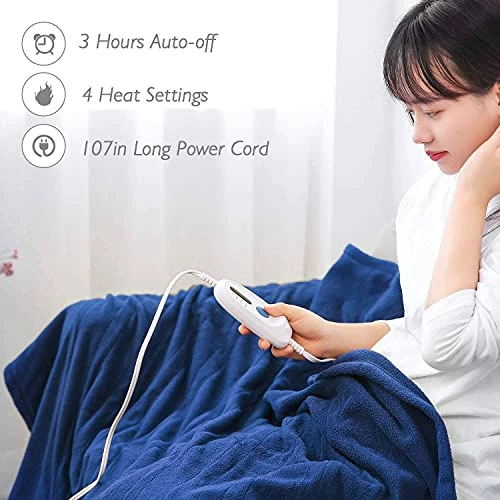NB NB Electric Blanket Heated Throw 50 X60 Lightweight Cozy Soft Fleece, 4 Temperature Settings Fast-Heating With 3 Hours Auto Off, ETL Certified, Full Body Warming, Machine Washable, Home Office Use
