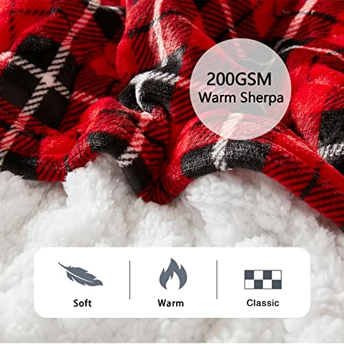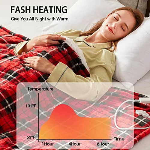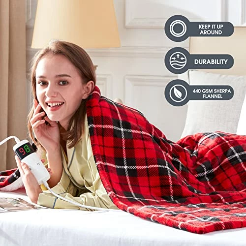 Octrot Electric Heated Blanket, 10 Heating Level Throw Blanket & 5 Options Auto Off & 5 Min Fast Heating Blanket For Adult, Sherpa Heated Blanket Soft Lap Warming (50”x62”, Red Plaid)