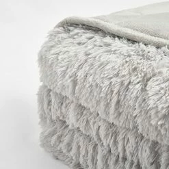 Sienna Fluffy Fleece Weighted Blanket Throw – Silver, 49″ X 71″ – 6kg