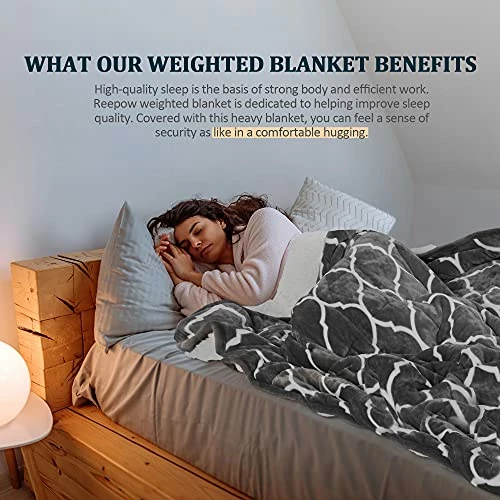 - Long-Time and Warm Company: Reepow adopts the classic 7-layer design. The ceramic beads are evenly distributed in independent grid. The 2 layers of non-glue polyester and extra fabric are used to firmly fix the beads, so they will not gather or move from one grid to another, or leakage outside. No matter how you toss and turn, the blanket will hug you all night