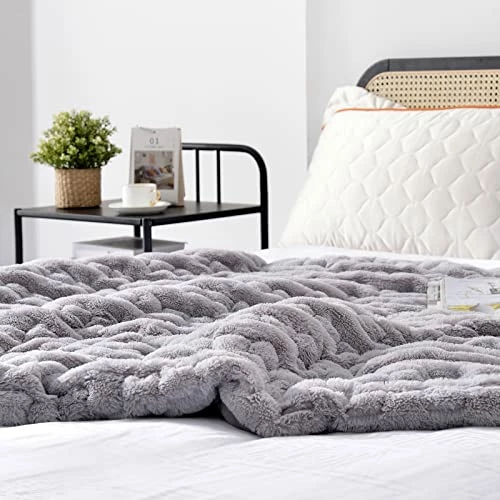 RHEIN HOME Electric Heated Throw Blanket 50”x60” – Velvety Soft Fast Heating Blanket Machine Washable With 4 Heat Settings 3H Auto Off Over-Heat Protection (Gray)