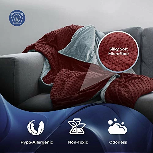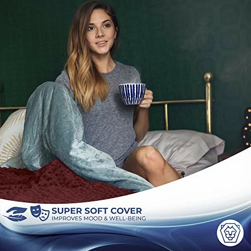 Roore Weighted Blanket (Red, 15 Lb 48″x72″) Weighted Blanket With Plush Minky Removable Cover I Weighted With Premium Glass Beads I Adults From 125 To 175 Lb