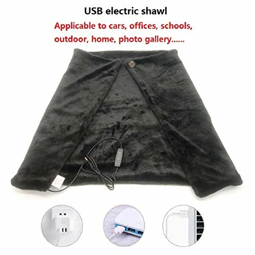 SEITG USB Electric Heating Blanket Heated Shawl 3 Heating Settings And 3 Hours Auto Off For Office Study Sitting Room Library Coffee Shop Plane And More (Black)