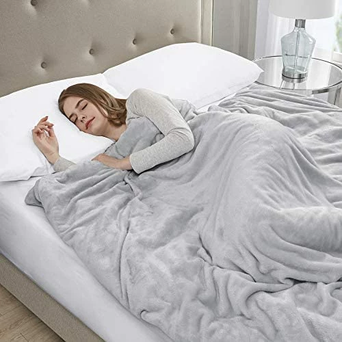 Sleep Philosophy Plush Weighted Ultra Soft And Cozy Warm Calming Heavy Blankets With Poly And Beads Filling, Zipper Removable Cover For Adults, 60×70-12lbs, Grey
