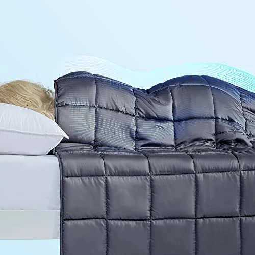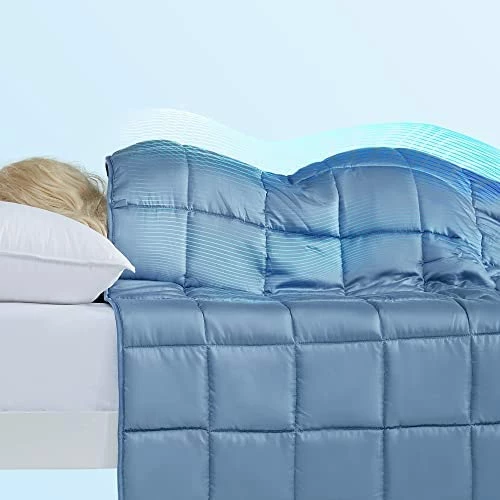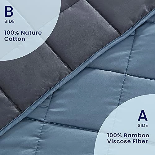 SLEEP ZONE Reversible Cooling Weighted Blanket 15 Lbs Twin 48×72 Inches Pressue Relief Blanket For Adults With Premium Glass Beads (Blue+Grey)