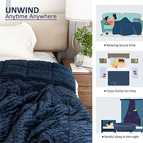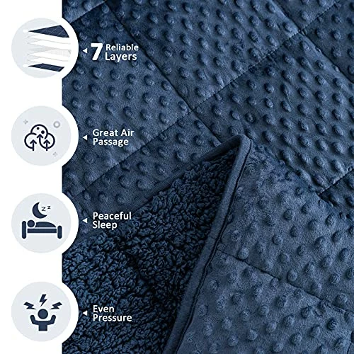 - Top-grade Minky Dots Weighted Blanket: Using 2 in 1 technology features raised 3D dots that feel like light pats and strokes on the skin .sewn up with ultra-soft Sherpa fleece to keep comfy and warm. Sturdy 7 layer structure is built to last.