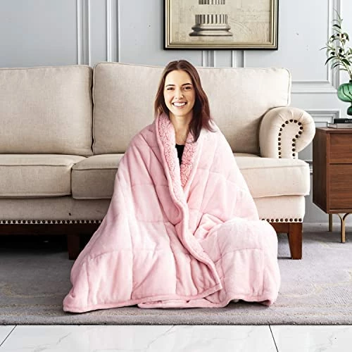 Stiio Sherpa Weighted Blanket 20 Pounds For Adult, Queen Size 60 X 80 Inches Fluffy Plush Reversible Fuzzy Heavy Blanket, Ultra Soft Cozy Weighted Blanket For Sofa Couch Bed, Peach Pink
