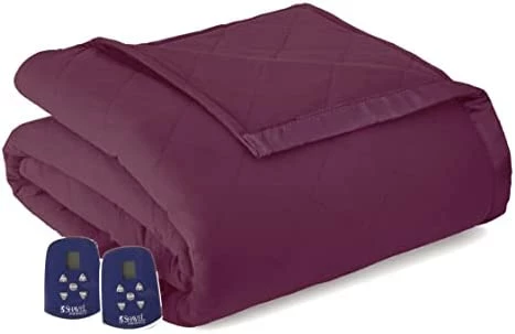 - SATIN-TRIMMED MICRO FLANNEL HEATED BLANKET: Cozy features include patented 7 Layers of Warmth; Micro Flannel, down alternative fill, specially-crafted electrical cloth and a quilted layer of heating elements
