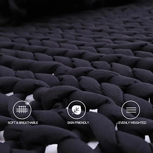 Waowoo Knitted Cooling Weighted Blanket Queen Size Handmade Chunky Knitted Weighted Throw Blanket ( Dark Black, 60″×80″ 15 Pounds )