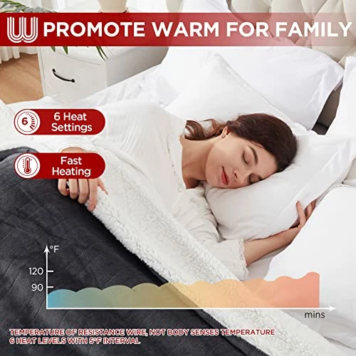 Warmrest Electric Throw Blanket Heated Blanket With 6 Heating Levels And 4 Hours Auto Shut Off, Flannel To Sherpa Super Cozy Heating Blanket, Machine Washable, 50″ X 60″, Charcoal