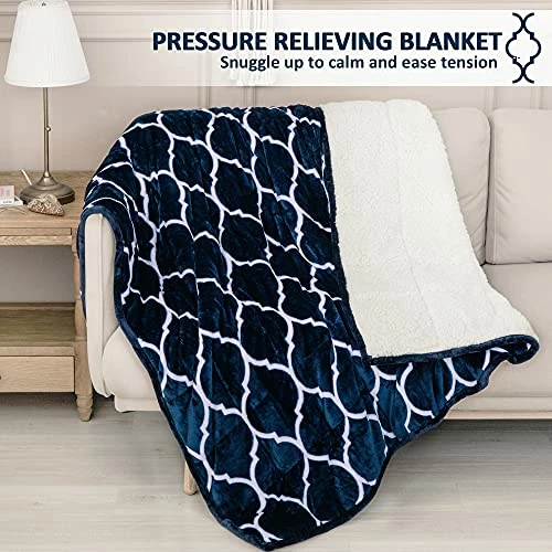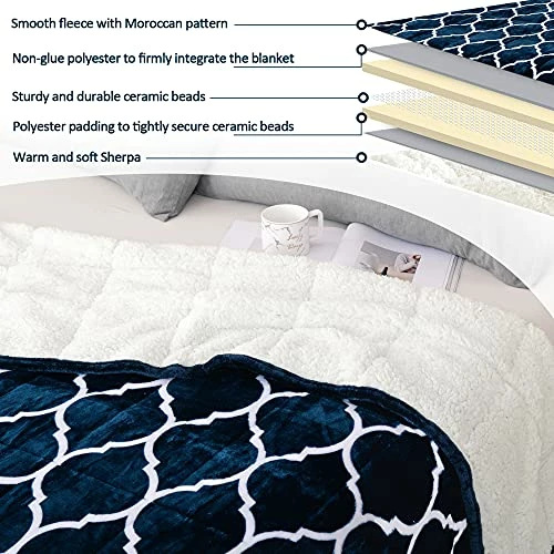 - Distinctive Moroccan Pattern: This double-side weighted blanket features Moroccan patterned plush fleece with a soft and smooth touch and luxurious lambwool textured Sherpa that’s breathable and gentle on the skin. Toxic-free ceramic beads evenly compartmented and pocketed within 70gsm polyester padding won’t leak or shuffle around, so the compact 7-layer blanket snugly conforms to your body, making you feel dozy and fall asleep right away