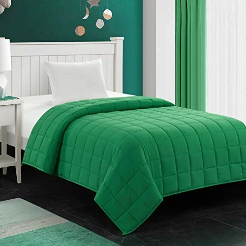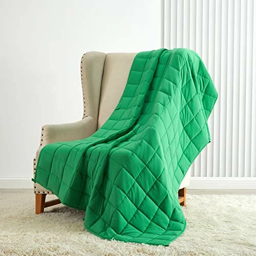 Well Being Quilted Microfiber 15 Pound Soft Weighted Blanket,Green, 48″x72″